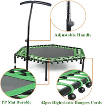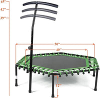 Home Gym Exercise Trampoline with Adjustable Handrail, Indoor/Outdoor, Hexagon, for Adults & Kids | Ideal for All Surfaces, Kids & Adults | Match-Ready | Includes Pump & Needle | Durable & Long-Lasting
