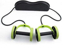 Perform up to 40 different exercises rolling to strengthen core, wheel handles with elastic bands for arm workout